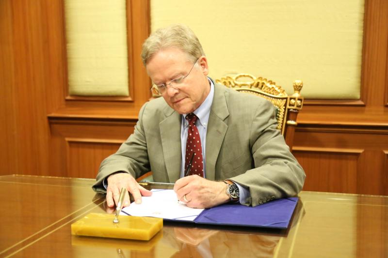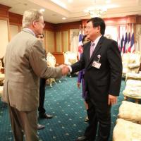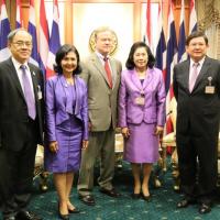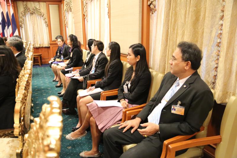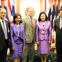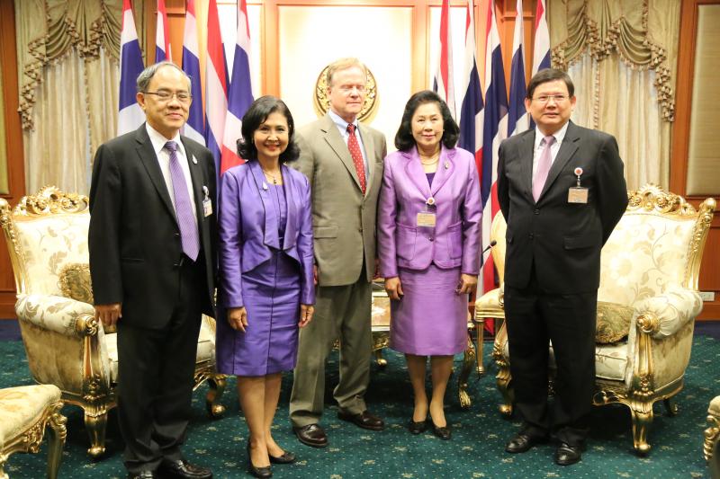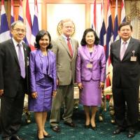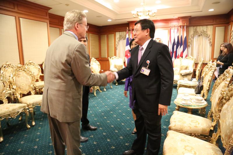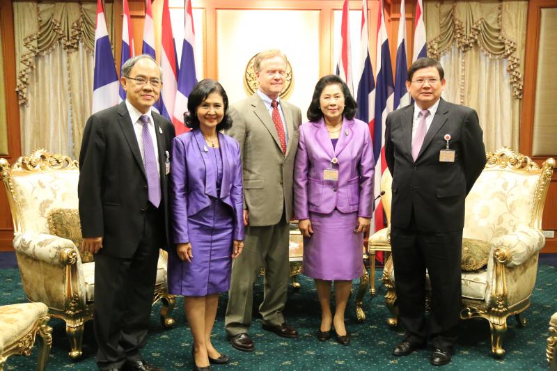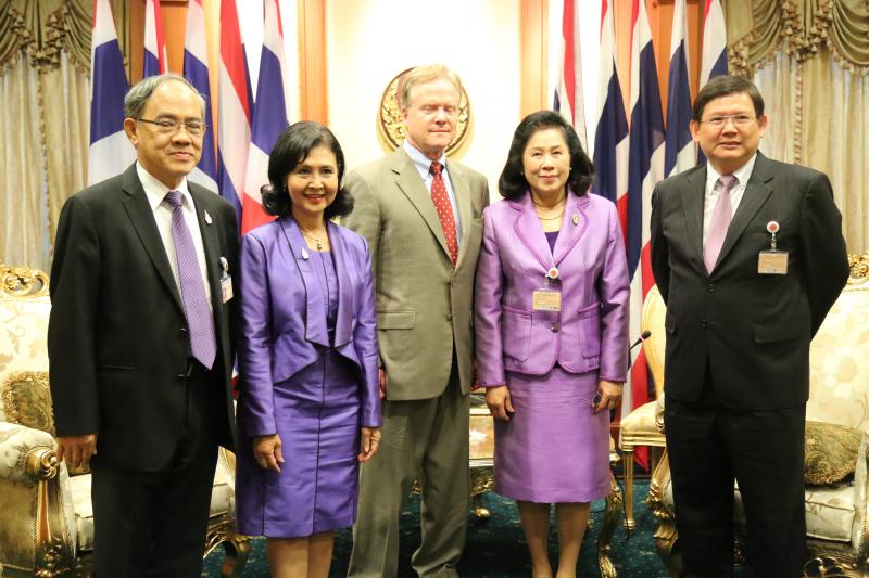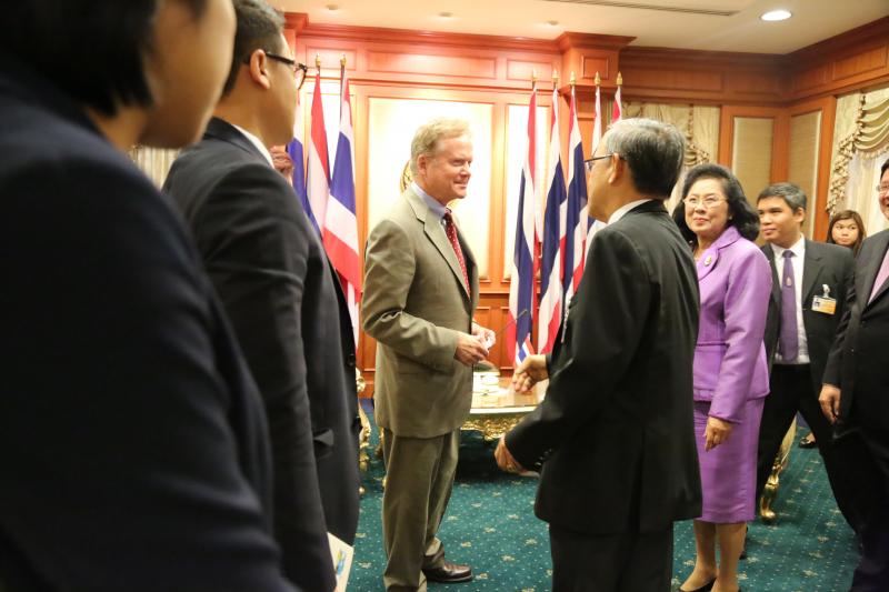 รองประธานสภาปฏิรูปแห่งชาติ คนที่สอง พร้อมสมาชิกสปช. ให้การรับรองนายเจมส์ (จิม) เฮนรี เว็บบ์ อดีตผู้ช่วยรัฐมนตรีว่าการกระทรวงกลาโหมสหรัฐอเมริกา และอดีตวุฒิสมาชิกสหรัฐอเมริกา