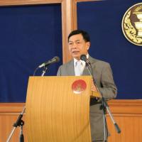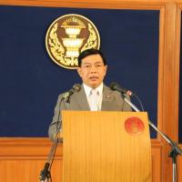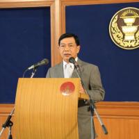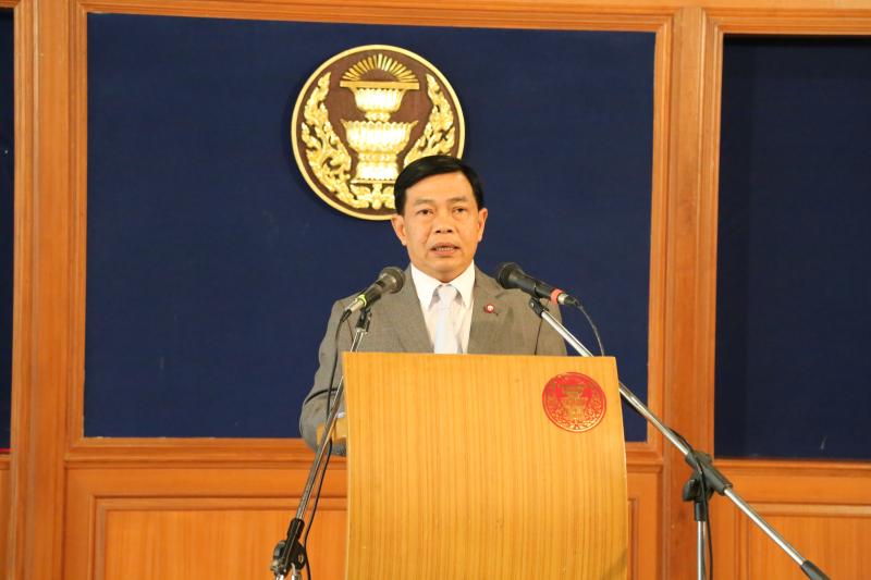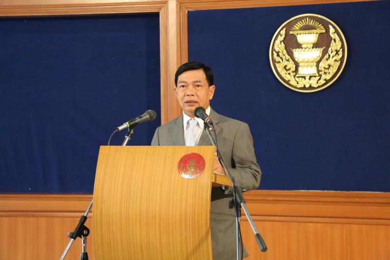 นายอลงกรณ์ พลบุตร เลขานุการคณะกรรมาธิการวิสามัญกิจการสภาปฏิรูปแห่งชาติ (วิปสปช.) แถลงข่าว