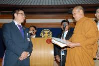 ประธานกรรมาธิการยกร่างรัฐธรรมนูญรับหนังสือจากหลวงปู่พุทธะอิสระ เพื่อขอเสนอแก้ไขเพิ่มเติมร่างรัฐธรรมนูญ