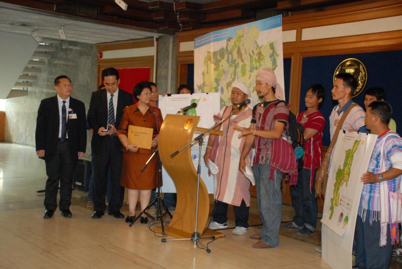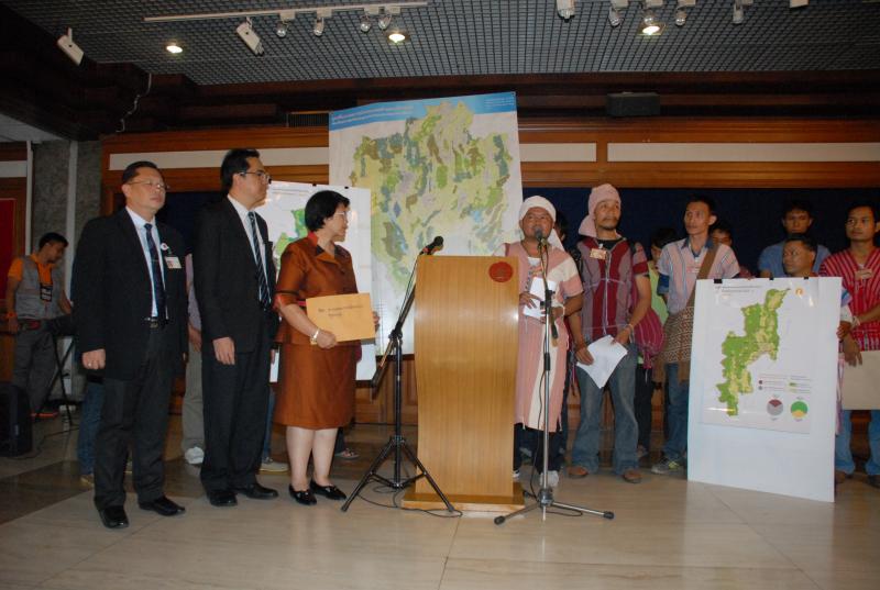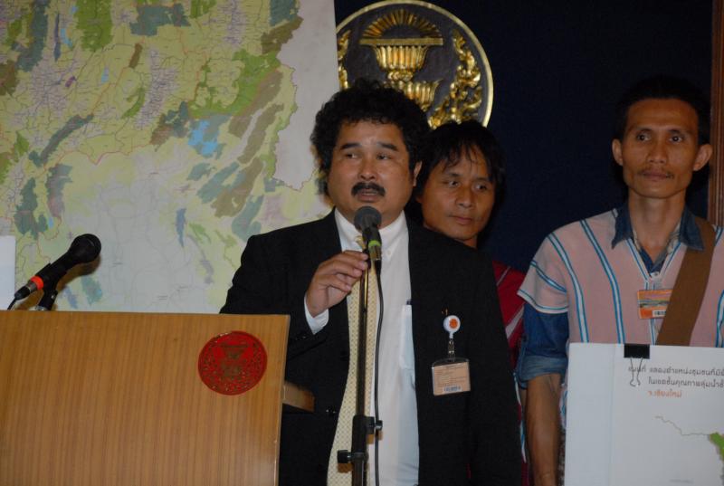 ไพร กรรมการเครือข่ายกลุ่มเกษตรกรภาคเหนือ เรื่อง ขอขอบคุณคณะกรรมาธิการยกร่างรัฐธรรมนูญที่ยืนยันหลักการสิทธิชุมชนไว้ในร่างรัฐธรรมนูญฉบับใหม่ หลังจากนั้นตัวแทนกลุ่มเครือข่ายเกษตรกรภาคเหนือได้ยื่นหนังสือกับนายปราโมทย์ ไม้กลัด ประธานกมธ.ปฏิรูปทรัพยากรธรรมชาติและสิ่งแวดล้อม เรื่อง สรุปประเด็นข้อเสนอแนะในการแก้ไขร่างพระราชบัญญัติป่าชุมชน พ.ศ. .... |