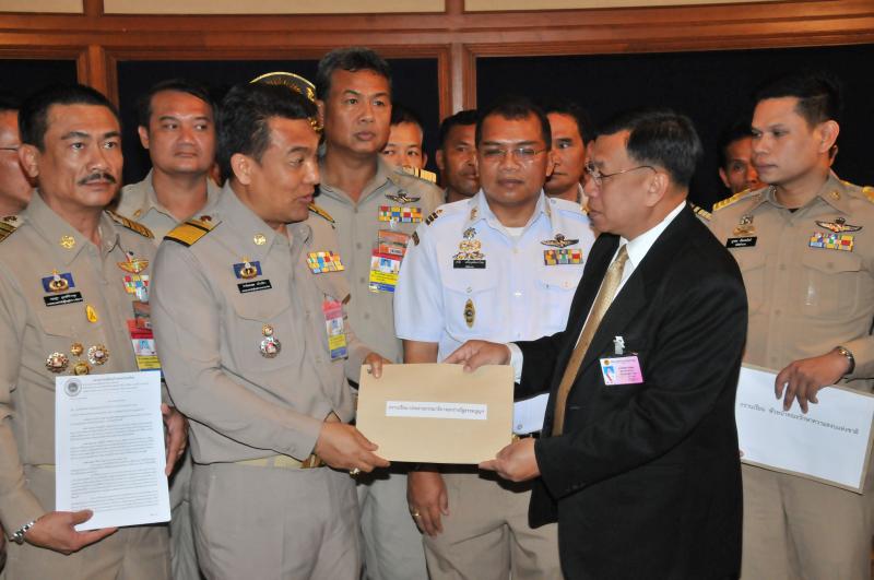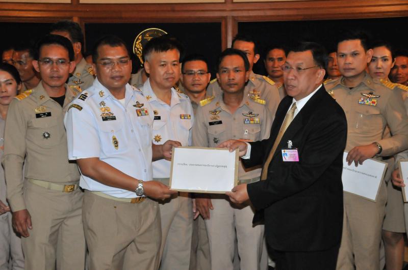 ผู้อำนวยการสำนักงานประธานสภาผู้แทนราษฎรเป็นตัวแทนรับหนังสือจากประธานสหพันธ์ปลัดอำเภอแห่งประเทศและนายกสมาคมกำนันผู้ใหญ่บ้านแห่งประเทศ