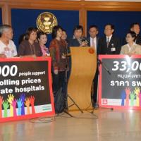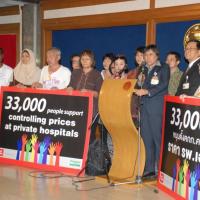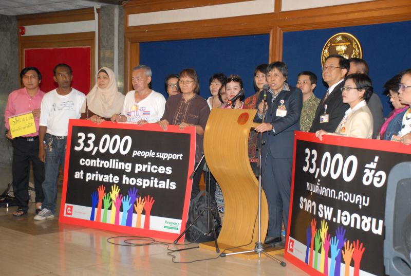 วันอังคารที่ ๑๒ พฤษภาคม ๒๕๕๘ เวลา ๑๕.๐๐ นาฬิกา ณ บริเวณห้องโถง ชั้น ๑ อาคารรัฐสภา ๑ นางสาวสารี อ๋องสมหวัง ประธานกรรมาธิการปฏิรูปการคุ้มครองผู้บริโภค พร้อมด้วย ศ.นพ.ประเสริฐ ศัลย์วิวรรธน์ เลขานุการกรรมาธิการปฏิรูประบบสาธารณสุข รับยื่นข้อเสนอ พร้อมรายชื่อประชาชนที่ สนับสนุนการตั้ง คกก.ควบคุมราคารพ.เอกชน จำนวน ๓๐,๐๐๐ รายชื่อ จากนางปรียานันท์ ล้อเสริมวัฒนา ตัวแทนเครือข่ายผู้ป่วยและคณะ โดยเสนอ ตั้งคณะกรรมการควบคุมราคา รพ.เอกชน ที่ประกอบด้วยผู้มีส่วนได้ส่วนเสีย ให้มีความเป็นธรรมในทุกภาคส่วน และขอให้เป็นการบริการ แบบ one stop service ที่มีประสิทธิภาพ และประสิทธิผล ประธาน กมธ.ปฏิรูปการคุ้มครองผู้บริโภค กล่าวขอบคุณเครือข่ายผู้ป่วย ที่ มีความห่วงใยผู้ป่วย และจะนำเรื่องที่เสนอมานี้เข้าที่ประชุม กมธ. คุ้มครองผู้บริโภคต่อไป เพื่อผลักดันให้เกิดคณะกรรมการนี้ขึ้น