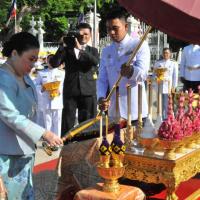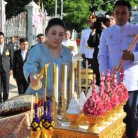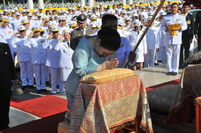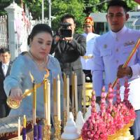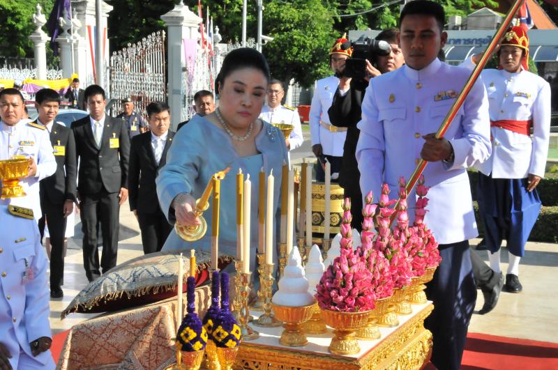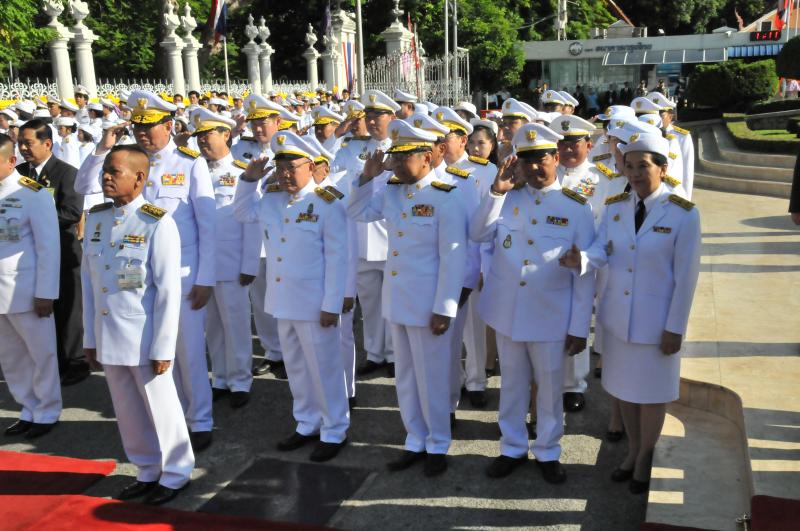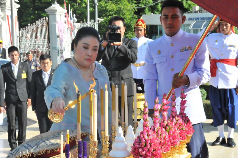 พระเจ้าวรวงศ์เธอ พระองค์เจ้าโสมสวลี พระวรราชาทินัดดามาตุ ทรงวางพวงมาลาถวายราชสักการะพระบาทสมเด็จพระปกเกล้าเจ้าอยู่หัว