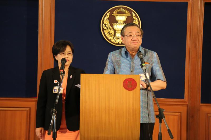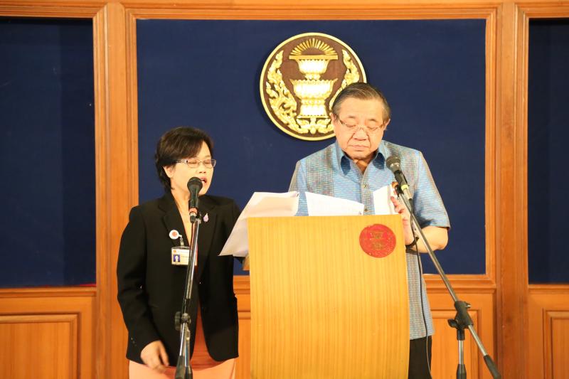 โฆษกกรรมาธิการยกร่างรัฐธรรมนูญ ร่วมกันแถลงข่าวภายหลังการประชุมเพื่อรับฟังคำชี้แจง ขอแก้ไขเพิ่มเติมร่างรธน. ของกลุ่มที่ ๑ และ ๒