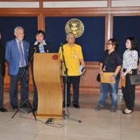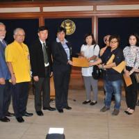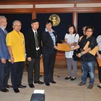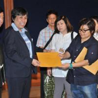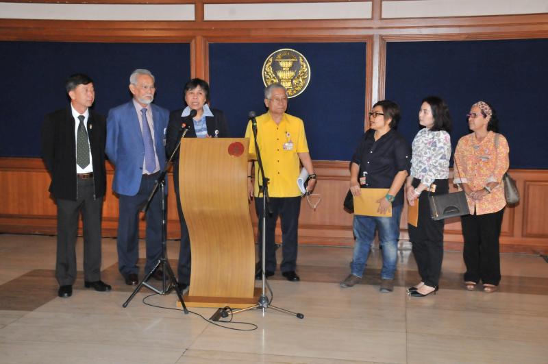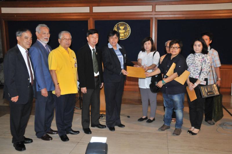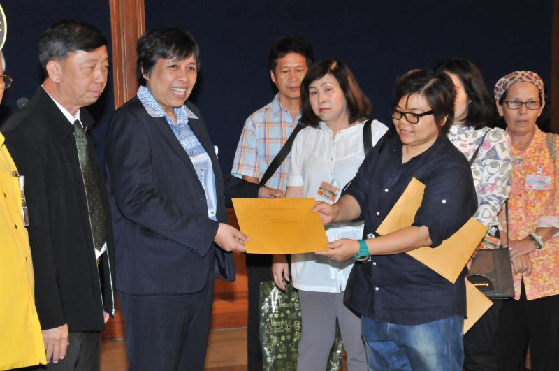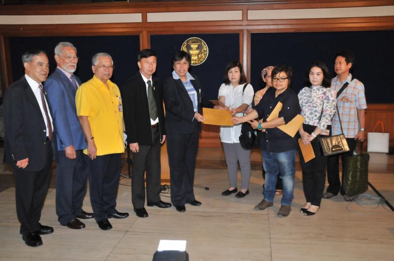 นางสาวสารี อ๋องสมหวัง ประธานกรรมาธิการปฏิรูปการคุ้มครองผู้บริโภค รับยื่นหนังสือจากตัวแทนผู้ได้รับความเดือดร้อนจากการเช่าพืันที่ในโครงการ ตลาดน้ำสวนทวดจีบ จ.ปทุมธานี