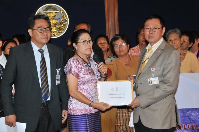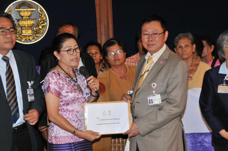 กร่างรัฐธรรมนูญรับยื่นหนังสือจาก นางสาววิภาศศิ ช้างทอง ผู้แทนสภาองค์กรชุมชนตำบลและ