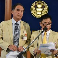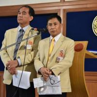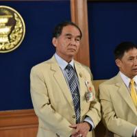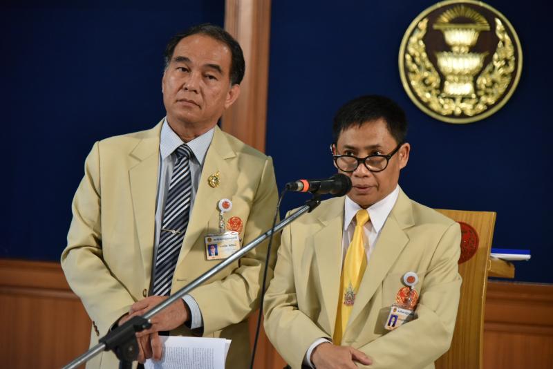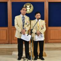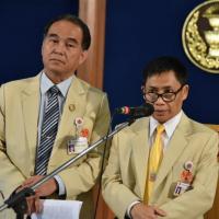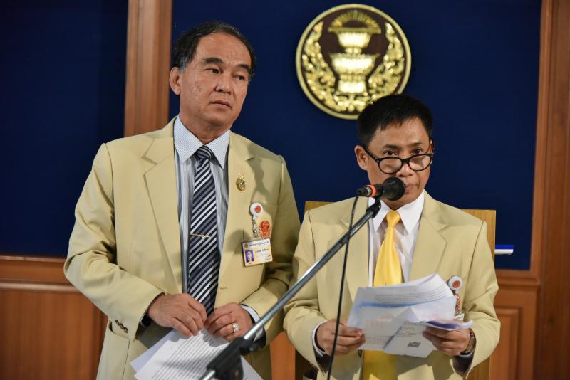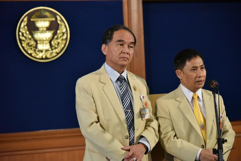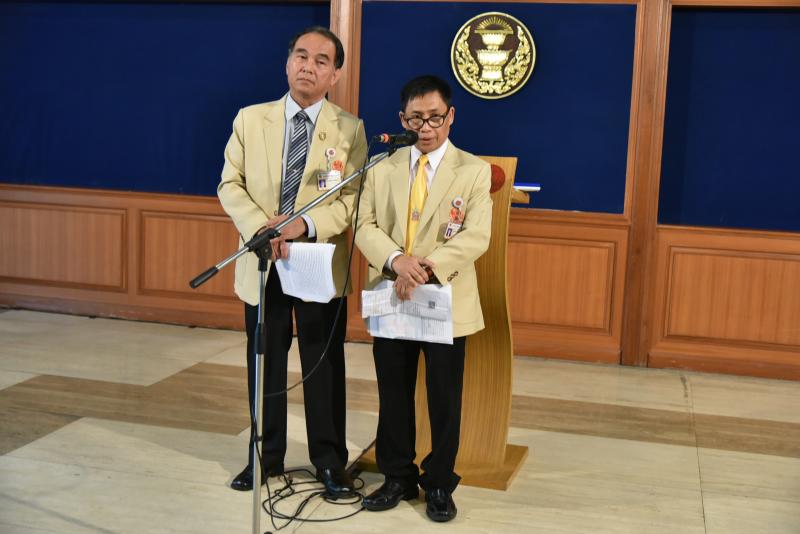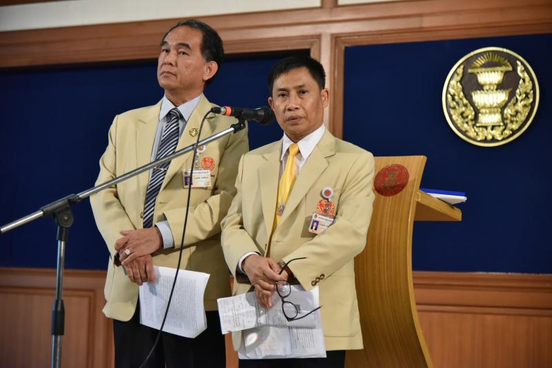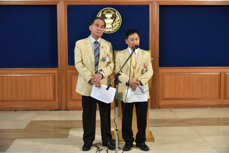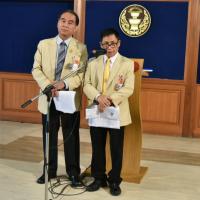 นายบุญเลิศ คชายุทธเดช และนายนิมิต สิทธิไตรย์ ร่วมแถลงข่าวเรื่องผลการประชุมของคณะทำงานเพื่อศึกษาสวัสดิภาพและสวัสดิการของสื่อสารมวลชน