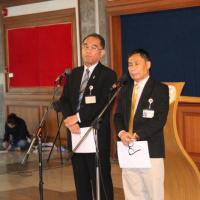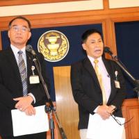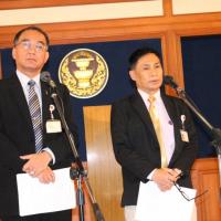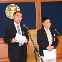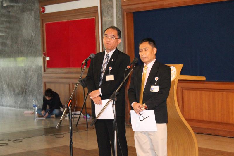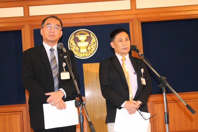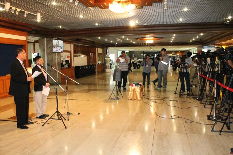 นายบุญเลิศ คชายุทธเดช และนายนิมิต สิทธิไตรย์ สมาชิกสภาปฏิรูปแห่งชาติ ร่วมกันแถลงข่าวประเด็นการปฏิรูปสื่อ