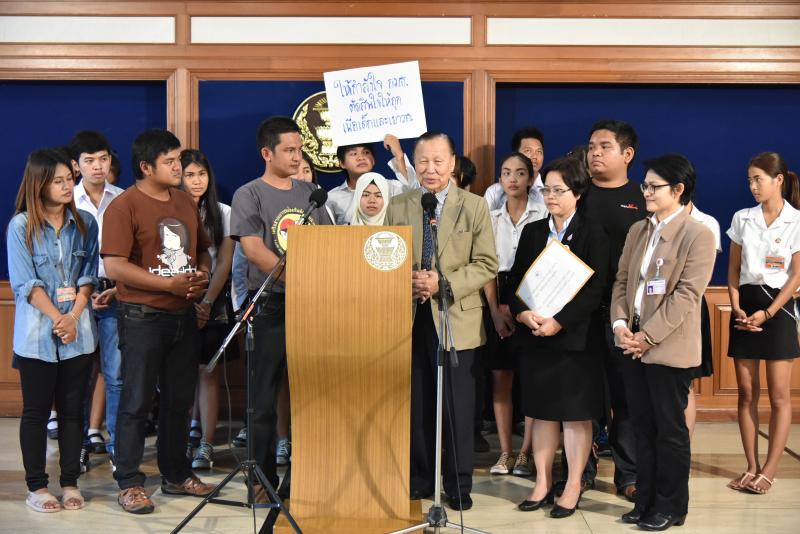 รองประธานกรรมาธิการยกร่างรัฐธรรมนูญ คนที่หนึ่ง รับหนังสือประสานเครือข่ายเด็กรุ่นใหม่ไม่พนัน