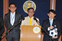 พล.อ.จิระ โกมุทพงศ์ โฆษกกรรมาธิการปฏิรูปการกีฬา พร้อมด้วยนายจุตินันท์ ภิรมย์ภักดี ประธาน