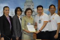 ประเทศ คนที่สอง รับยื่นหนังสือจากนายกฤษณะ ถวิลวงษ์ รองประธานคณะกรรมการดำเนินการกิจกรรมนักศึกษา