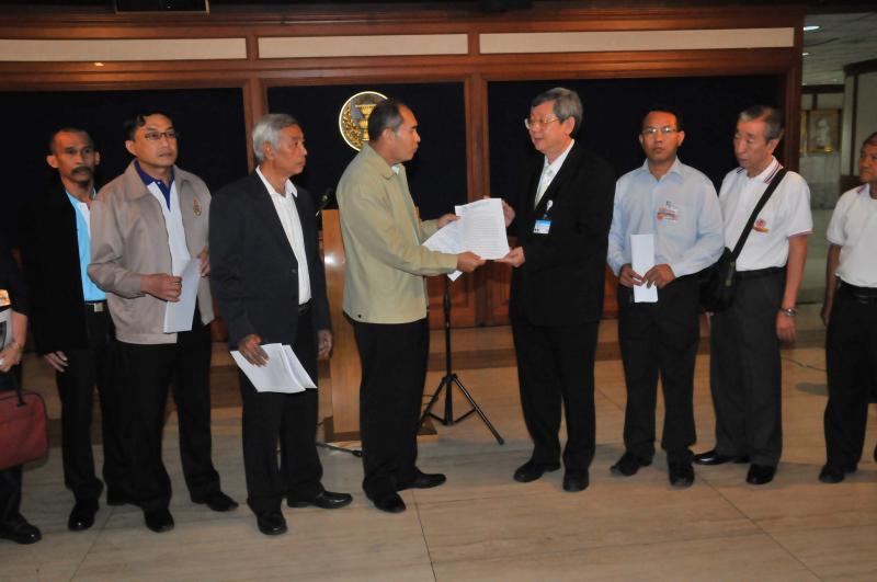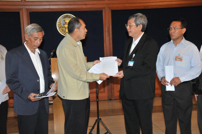 นายธิติพันธุ์ เชื้อบุญชัย กรรมการร่างรัฐธรรมนูญ รับยื่นหนังสือจากตัวแทน เครือข่ายพสกนิกรไทย รวมใจสามัคคี เพื่อเสนอความเห็นในการร่างรัฐธรรมนูญ