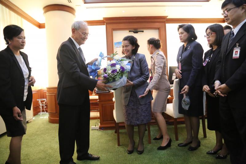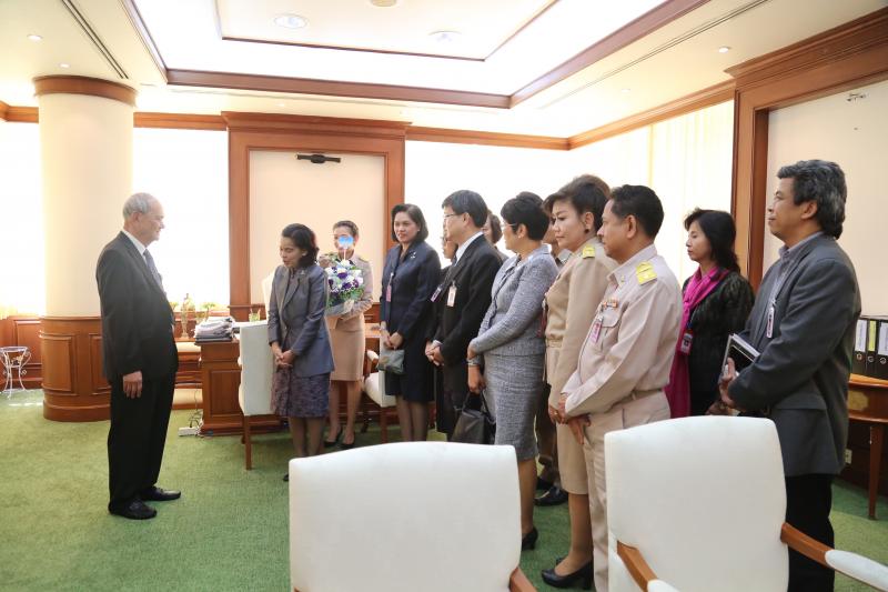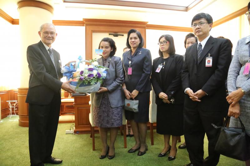 ประธานกรรมการร่างรัฐธรรมนูญ รับมอบกระเช้าดอกไม้จากเลขาธิการวุฒิสภา เนื่องในโอกาสวันขึ้นปีใหม่ พ.ศ. ๒๕๕๙