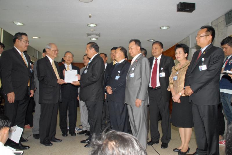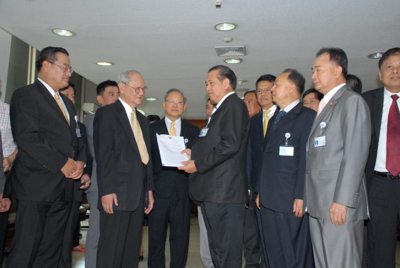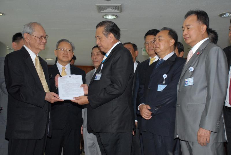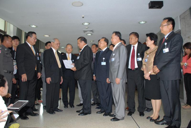 ชั้น ๓ อาคารรัฐสภา ๓ นายมีชัย ฤชุพันธุ์ ประธานกรรมการร่างรัฐธรรมนูญ รับหนังสือจาก นายเสรี สุวรรณภานนท์