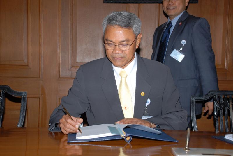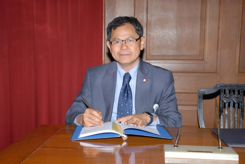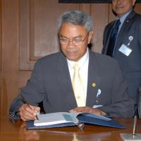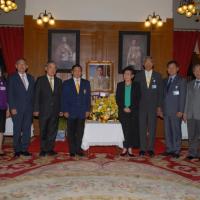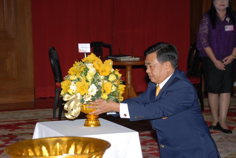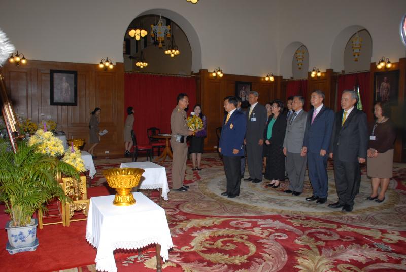 นำพานดอกไม้ ทูลเกล้าทูลกระหม่อมถวายพระบาทสมเด็จพระเจ้าอยู่หัว และได้ร่วมลงนามถวายพระพร
