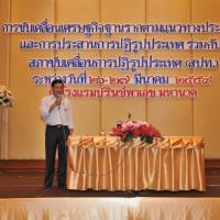 นายอลงกรณ์ พลบุตร ได้บรรยายสรุปถึงโรดแมปการทำงานของสภาขับเคลื่อนปฏิรูปประเทศ กลไกการทำงานของสภาขับเคลื่อนการปฏิรูปประเทศ ความคืบหน้าในการพิจารณาแผนการปฏิรูปประเทศในด้านๆ ของสภาขับเคลื่อนการปฏิรูปประเทศ และแผนยุทธศาสตร์ชาติ โดยได้อธิบายถึงความเป็นมา และหน้าที่ของคณะกรรมการขับเคลื่อนการปฏิรูปประเทศ และคณะกรรมการบริหารเครือข่ายร่วมขับเคลื่อนการปฏิรูปประเทศ โดยทั้งสองคณะกรรมการนี้ จะทำหน้าที่ในการสร้างและขยายเครือข่ายความร่วมมือระหว่างสภาขับเคลื่อนการปฏิรูปประเทศกับองค์กรต่างๆ เพื่อร่วมกันเดินหน้าปฏิรูปประเทศ เน้นการสร้างความร่วมมือกัน โดยใช้ทรัพยากรที่มีอยู่ให้เกิดประโยชน์สูงสุด การปฏิรูปประเทศจะเกิดได้ต้องเกิดจากการปฏิรูปในระดับฐานราก ใช้พลังพลเมือง และการมีส่วนร่วมของประชาชนตามแนวประชารัฐ เพื่อเดินหน้าปฏิรูปประเทศไปด้วยกัน อยู่ร่วมกันได้บนความแตกต่าง โดยมองผลประโยชน์ส่วนรวมเป็นที่ตั้ง เครือข่ายขบวนองค์กรชุมชน ๗๗ จังหวัด มีความเข้มแข็งและมีสมาชิกเป็นจำนวนมาก ย่อมจะช่วยสื่อสารงานด้านการปฏิรูปประเทศให้สามารถแพร่ขยายไปถึงทุกพื้นที่ได้ ช่วยสร้างการตระหนักรู้ให้กับประชาชนถึงความสำคัญในการปฏิรูปประเทศ โดยรูปแบบการทำงานของเครือข่ายสภาขับเคลื่อนการปฏิรูปประเทศนั้น จะเริ่มจากสถาบันราชภัฏทั่วประเทศจำนวน ๓๘ แห่ง ที่ได้ตกลงเป็นเครือข่ายสภาขับเคลื่อนการปฏิรูปประเทศแล้ว สถาบันราชภัฏจะเป็นสถาบันการปฏิรูปประเทศ (Academy Reform) และทำหน้าที่เป็นศูนย์อบรมบ่มเพาะ (Incubator) ผู้นำการปฏิรูปประเทศ สร้างผู้นำการปฏิรูปเพื่อเป็นผู้นำด้านการสื่อสารข่าวสารของสภาขับเคลื่อนการปฏิรูปประเทศไปให้เข้าถึงทั่วถึงพื้นที่ เพื่อสร้างคลื่นแห่งการปฏิรูป และสร้างผู้นำการเปลี่ยนแปลง (Change Agent) ให้เกิดขึ้นให้ประชาชนได้รับรู้ว่าการปฏิรูปมีอะไรบ้าง ทำไมต้องปฏิรูปประเทศ และจะปฏิรูปประเทศอย่างไร รวมถึงเมื่อปฏิรูปแล้วประเทศจะได้อะไร เพราะการปฏิรูปประเทศไม่สามารถเกิดขึ้นได้ในระยะเวลาอันสั้น จำเป็นต้องมีผู้นำด้านการปฏิรูปประเทศที่จะต้องสื่อสารเรื่องเหล่านี้อย่างต่อเนื่อง เพื่อให้ทุกคนตระหนักว่าการปฏิรูปประเทศเป็นความรับผิดชอบของทุกคน โดยใช้ทรัพยากรที่ทุกองค์กรมีอยู่เป็นเครื่องมือและช่องทางในการสื่อสารข่าวสารต่างๆ เช่น ทางสภาขับเคลื่อนการปฏิรูปประเทศ โดยทีมโฆษกสภาขับเคลื่อนการปฏิรูปประเทศและทีมประชาสัมพันธ์สภาขับเคลื่อนการปฏิรูปประเทศ จะนำส่งข้อมูลความคืบหน้าของสภาขับเคลื่อ