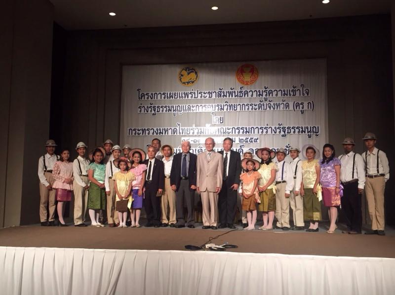 | วันพุธที่ ๑๘ พฤษภาคม ๒๕๕๙ เวลา ๐๙.๐๐ นาฬิกา ณ โรงแรมมิราเคิล แกรนด์ คอนเวนชั่น กรุงเทพฯ นายมีชัย ฤชุพันธุ์ ประธานกรรมการร่างรัฐธรรมนูญ เป็นประธานในพิธีเปิดโครงการจัดการฝึกอบรมวิทยากรกระบวนการ (ครู ก) พร้อมบรรยายภาพรวมของร่างรัฐธรรมนูญ ซึ่งโครงการดังกล่าวจัดขึ้นโดย กระทรวงมหาดไทยร่วมกับคณะกรรมการร่างรัฐธรรมนูญ |