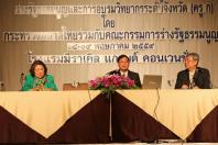 นายปกรณ์ นิลประพันธ์ เลขานุการ กรธ. คนที่หนึ่ง นายธิติพันธุ์ เชื้อบุญชัย และนางจุรี วิจิตรวาทการ กรธ. ร่วมกันบรรยาย เรื่อง สิทธิเสรีภาพ สิทธิสตรี หน้าที่ของรัฐ และแนวนโยบายแห่งรัฐ