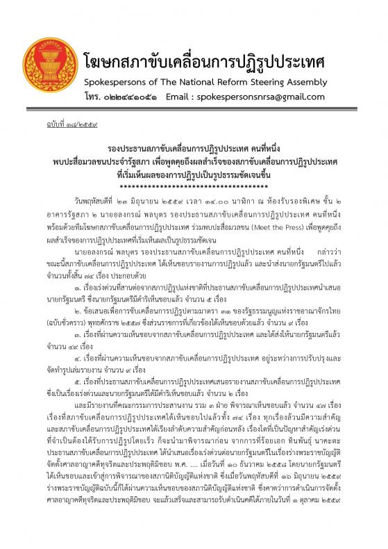 วีดิทัศน์สภาขับเคลื่อนการปฏิรูปประเทศ |
