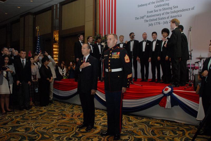 เข้าร่วมงานเลี้ยงฉลองครบรอบ ๒๔๐ ปี วันประกาศอิสรภาพของสหรัฐอเมริกาตามคำเชิญของ