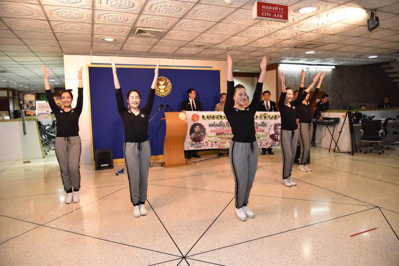 ความคืบหน้าการทำงาน โดยในการแถลงข่าวจะมีการแสดงประกอบเพลงกราวกีฬา ในจังหวะบาสโลบ