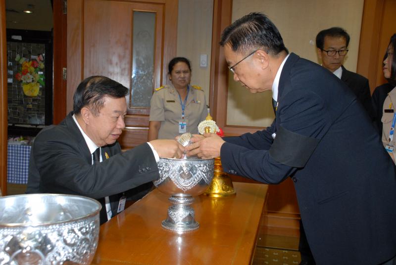 พร้อมด้วยข้าราชการฯ เข้ารดน้ำขอพรจาก นายอโณทัย ฤทธิปัญญาวงศ์ ประธานกรรมาธิการขับเคลื่อนการปฏิรูป