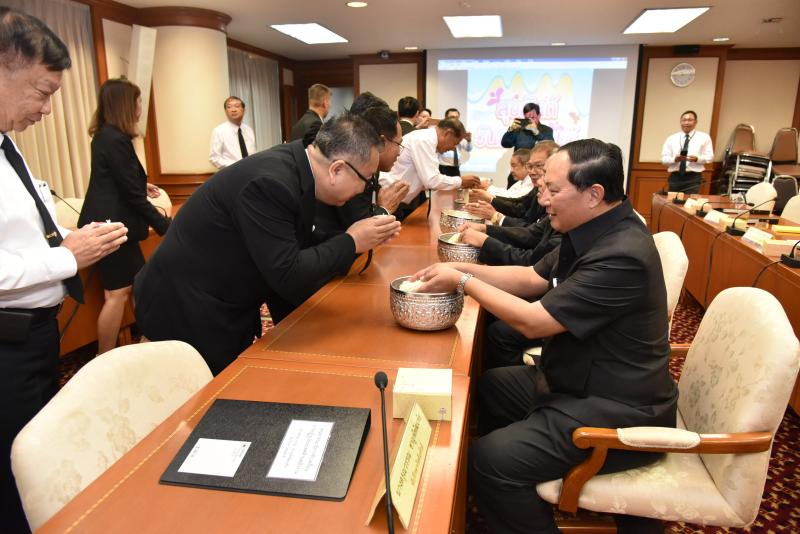 การประชุม ได้มีการรดน้ำดำหัวขอพรจากประธานกรรมาธิการฯ เนื่องในโอกาสเทศกาลวันสงกรานต์