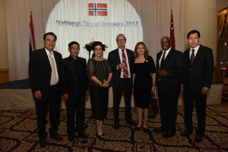 วันพฤหัสบดีที่ ๑๘ พฤษภาคม ๒๕๖๐ เวลา ๑๘.๓๐ นาฬิกา ณ ห้องแกรนด์บอลรูม โรงแรมเชอราตัน แกรนด์ สุขุมวิท กรุงเทพฯ นายอลงกรณ์ พลบุตร รองประธานสภาขับเคลื่อนการปฏิรูปประเทศ คนที่หนึ่ง ร่วมงานเลี้ยงรับรองในโอกาสวันชาติราชอาณาจักรนอร์เวย์ ตามคำเชิญของนายเชทิล เพาล์เซน (H.E. Mr. Kjetil Paulsen) เอกอัครราชทูตราชอาณาจักรนอร์เวย์ประจำประเทศไทย |