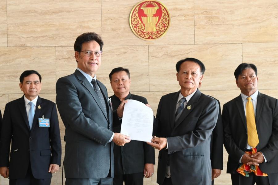นพ.สุกิจ อัถโถปกรณ์ ที่ปรึกษาประธานสภาผู้แทนราษฎร รับยื่นร่างกฎหมายที่เสนอจากภาคประชาชน จำนวน 3 ร่าง