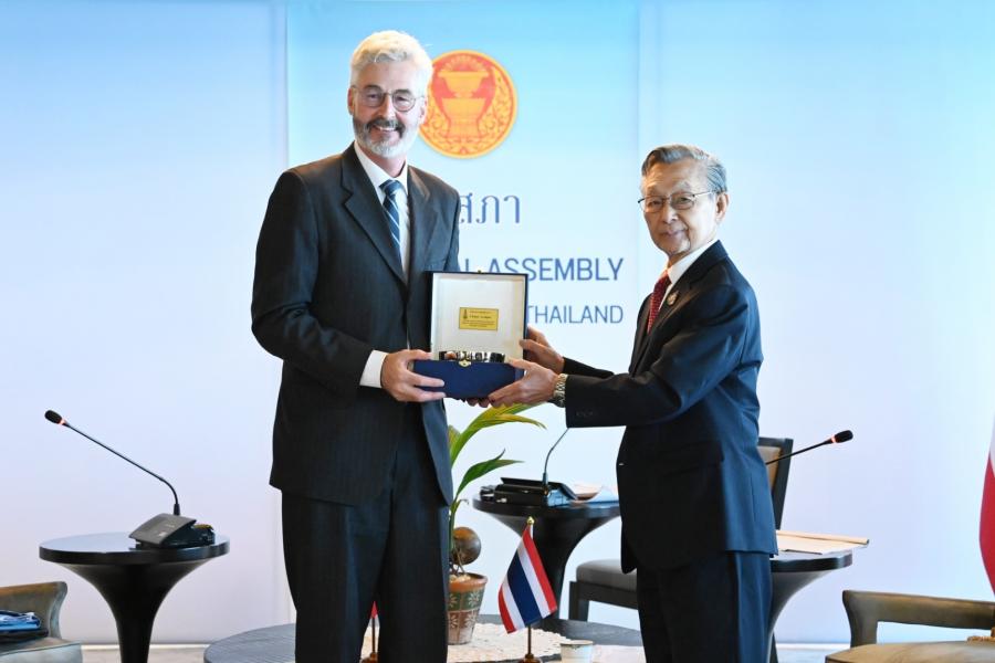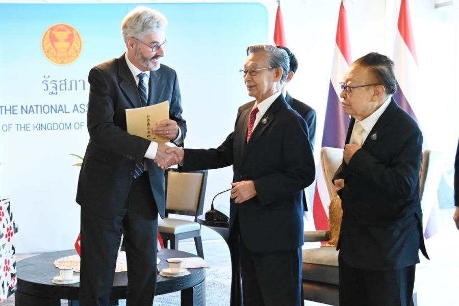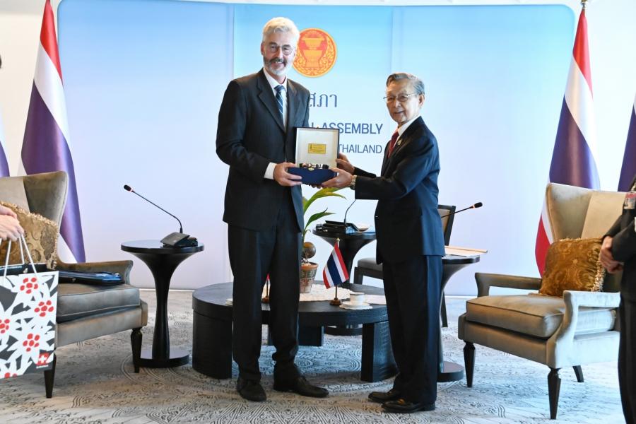 ประธานรัฐสภา ให้การรับรองเอกอัครราชทูตสมาพันธรัฐสวิสประจำประเทศไทย ในโอกาสเข้าเยี่ยมคารวะ เพื่อแนะนำตัวและกระชับความสัมพันธ์ระหว่างรัฐสภาไทยและสมาพันธรัฐสวิส