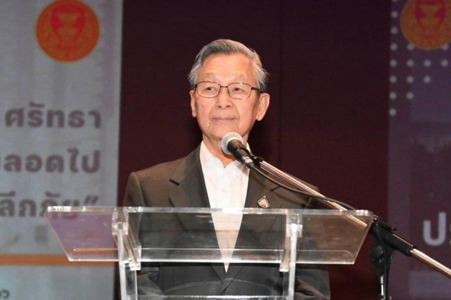 "มุทิตา คารวะ มนะน้อม ผู้ถึงพร้อม ธรรมนิยม พรหมวิหาร อีกศาสตร์ศิลป์ เชิงชั้น ขั้นเชี่ยวชาญ คือประธาน ผู้ครบถ้วน "ชวน หลีกภัย" สี่ปีผ่าน งานยิ่งใหญ่ ให้รำลึก สร้างสำนึก สุจริต คิดโปร่งใส เป็นรากฐาน เพิ่มคุณค่า สภาไทย ประจักษ์ใจ น้อมมนัส กตเวที ถึงวันนี้ จำจบ ครบวาระ ขอพรพระ รัตนะเพิ่ม เสริมราศี แด่ผู้เปี่ยม คุณงาม และความดี ปูชนีย์ ที่สัตย์ซื่อ ชื่อนายชวน"