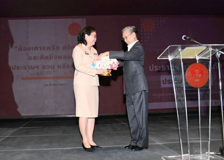 ประธานรัฐสภา รับการแสดงมุทิตาจิตในโอกาสครบวาระสภาผู้แทนราษฎร ชุดที่ 25 จากนางพรพิศ เพชรเจริญ เลขาธิการสภาผู้แทนราษฎร พร้อมด้วยคณะผู้บริหาร ข้าราชการ พนักงานราชการ ลูกจ้างของสำนักงานฯ