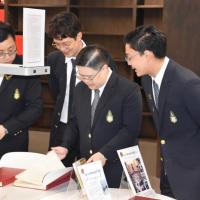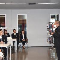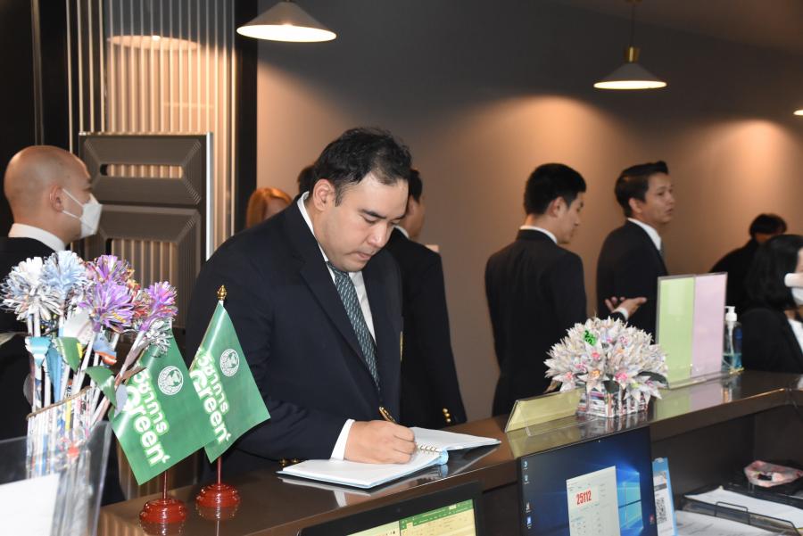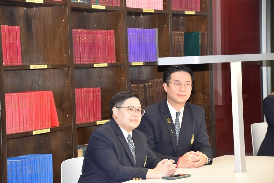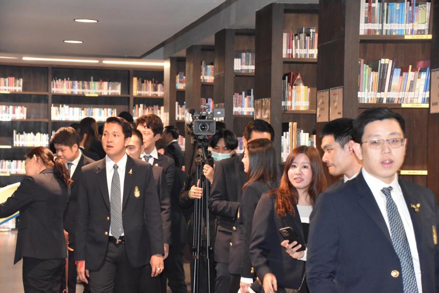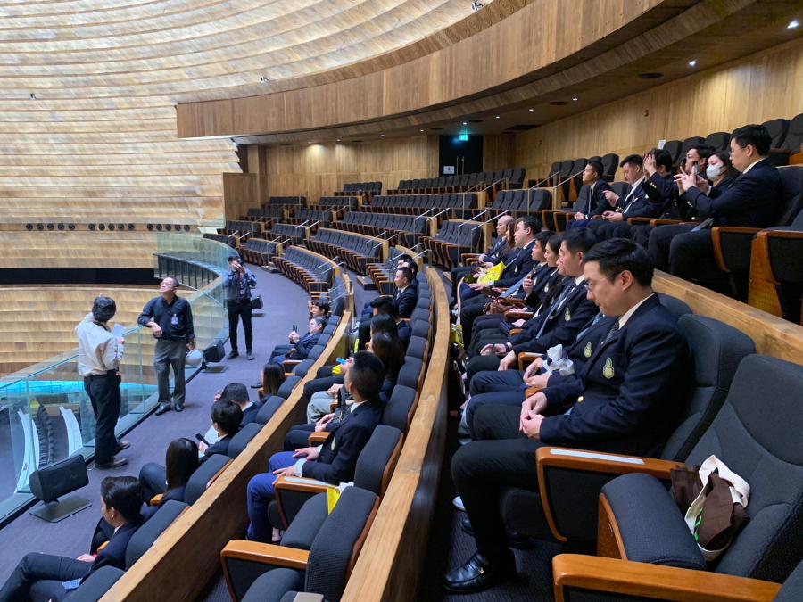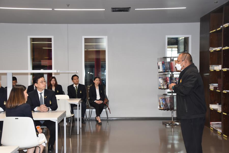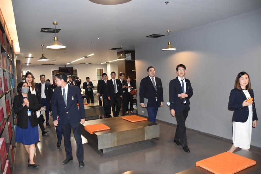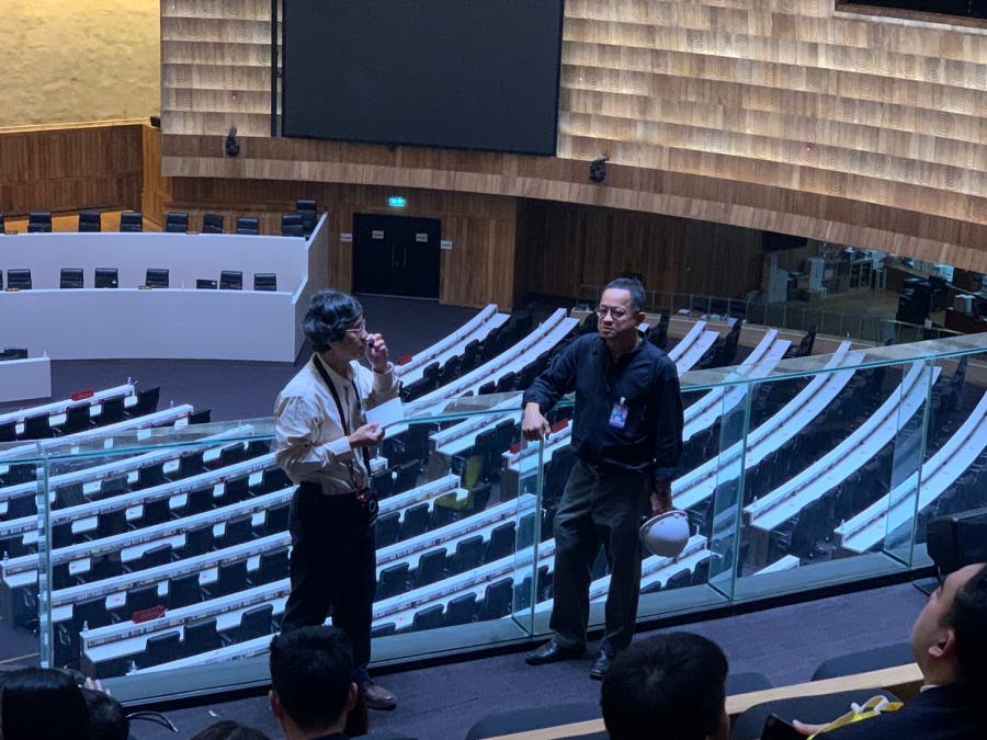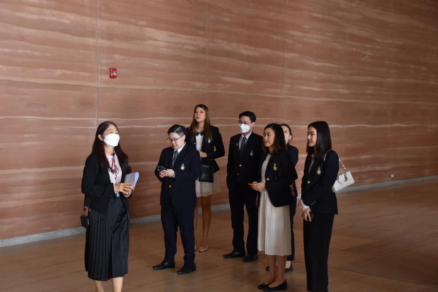 นอกจากนี้ อาจารย์ชาตรี ลดาลลิตสกุล ศิลปินแห่งชาติ สาขาทัศนศิลป์ ร่วมให้การต้อนรับและบรรยายสรุปเรื่อง สถาปัตยกรรม การก่อสร้างอาคารสัปปายะสภาสถาน