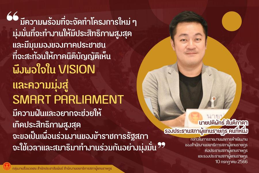 ประธานสภาผู้แทนราษฎร พร้อมด้วยรองประธานสภาผู้แทนราษฎร เข้าร่วมรับฟังการรายงานผลการดำเนินงานของสำนักงานเลขาธิการสภาผู้แทนราษฎร
