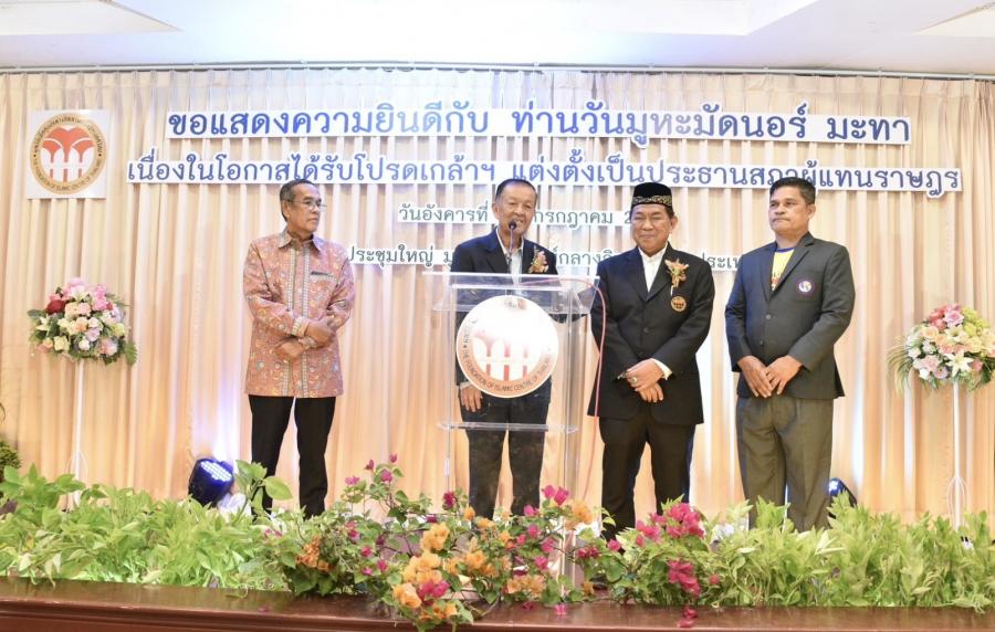 นายวันมูหะมัดนอร์ มะทา ประธานรัฐสภาและประธานสภาผู้แทนราษฎร ร่วมงานเลี้ยงแสดงความยินดี เนื่องในโอกาสได้รับโปรดเกล้าฯ แต่งตั้งเป็นประธานสภาผู้แทนราษฎร