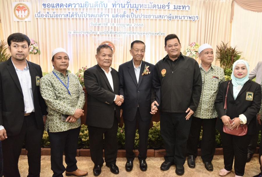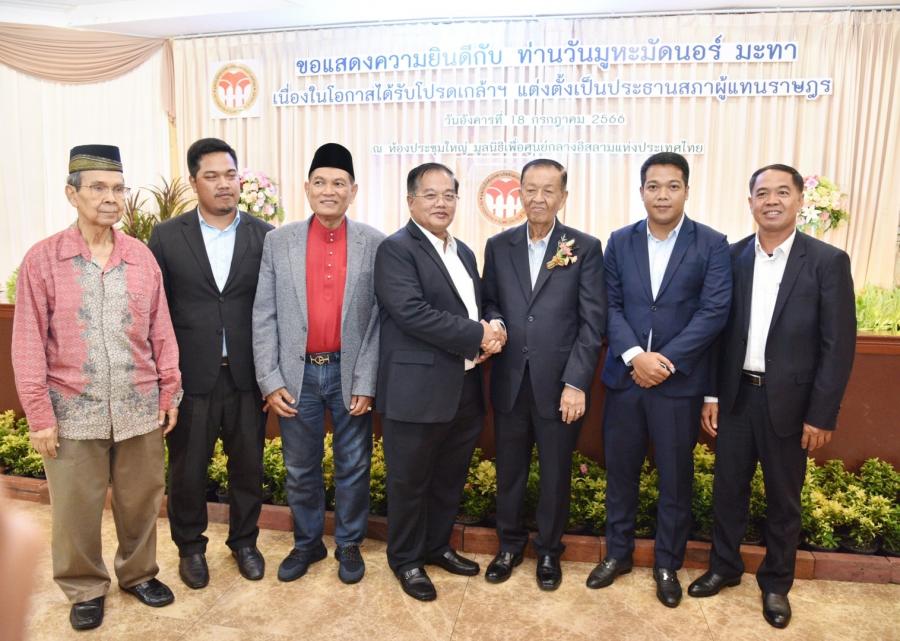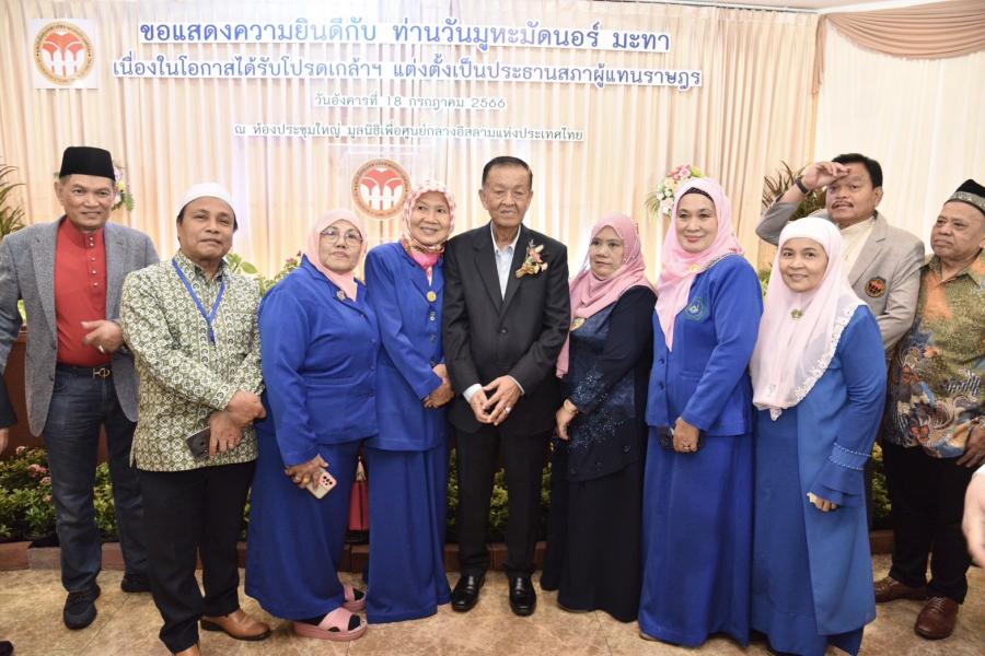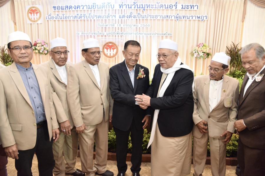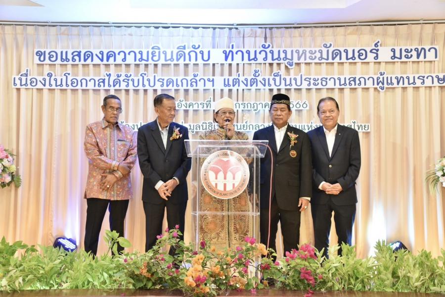 เมื่อวันที่ 18 ก.ค. 66 เวลา 18.00 น. ณ มูลนิธิเพื่อศูนย์กลางอิสลามแห่งประเทศไทย เขตสวนหลวง กรุงเทพฯ นายวันมูหะมัดนอร์ มะทา ประธานรัฐสภาและประธานสภาผู้แทนราษฎร ร่วมงานเลี้ยงแสดงความยินดี เนื่องในโอกาสได้รับโปรดเกล้าฯ แต่งตั้งเป็นประธานสภาผู้แทนราษฎร จัดโดยคณะกรรมการมูลนิธิเพื่อศูนย์กลางอิสลามแห่งประเทศไทย โดยมี สมาชิกสภาผู้แทนราษฎรและองค์กรมุสลิมต่าง ๆ ร่วมแสดงความยินดี