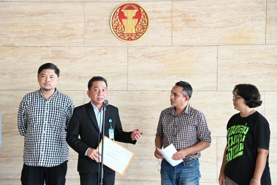 วันพฤหัสบดีที่ 27 กรกฎาคม 2566 เวลา 15.05 นาฬิกา ณ จุดรับยื่นหนังสือ ชั้น 1 (โซนกลาง) อาคารรัฐสภา นายวันมูหะมัดนอร์ มะทา ประธานสภาผู้แทนราษฎร มอบหมายให้ นายเจษ อนุกูลโภคารัตน์ ผู้บังคับบัญชากลุ่มงานประสานการเมืองและรับเรื่องราวร้องทุกข์ สำนักงานประธานสภาผู้แทนราษฎร เป็นตัวแทนรับยื่นหนังสือจาก นายสมบูรณ์ คำแหง ประธานคณะกรรมการประสานงานองค์กรพัฒนาเอกชน (กป.อพช.) และคณะ เพื่อขอให้ประธานรัฐสภากล้าหาญ เที่ยงตรง เคารพเสียงประชาชนและเคารพรัฐธรรมนูญ กรณีการเลือกนายกรัฐมนตรี จากสถานการณ์ทางการเมืองที่ยังไม่สามารถเลือกนายกรัฐมตรีได้ในขณะนี้ กำลังเข้าสู่ภาวะวิกฤต และอาจจะเป็นเงื่อนไขนำไปสู่เหตุการณ์ที่ไม่คาดคิดที่จะทำให้ระบอบประชาธิปไตยของประเทศต้องสะดุดลงอีกครั้ง การใช้กลไกของรัฐสภาเป็นทางออกที่ดีที่สุดต่อเรื่องนี้ ทั้งนี้ จะต้องอาศัยความกล้าหาญและความเที่ยงตรงในการทำหน้าที่ประธานรัฐสภาเป็นที่ตั้ง โดยยึดหลักรัฐธรรมนูญ และฉันทามติของประชาชนเป็นสำคัญ กป.อพช. มีความเห็นว่าการทำหน้าที่ของสมาชิกสภาผู้แทนราษฎร และสมาชิกวุฒิสภา อันเป็นองค์ประชุมร่วมในรัฐสภา จะเป็นหนทางเดียวที่จะแก้ไขปัญหาการเมืองที่กำลังเป็นอยู่ในขณะนี้ได้ ทั้งนี้จะต้องเป็นการทำหน้าที่ในฐานะ "ผู้แทนปวงชนชาวไทย ที่ต้องไม่อยู่ในความผูกมัดแห่งอาณัติมอบหมายหรือความครอบงำใด ทั้งต้องปฏิบัติหน้าที่ด้วยความซื่อสัตย์สุจริต เพื่อประโยชน์ส่วนรวมของประเทศชาติและความผาสุกของประชาชนโดยรวม โดยปราศจากการขัดกันแห่งผลประโยชน์" ซึ่งเป็นบทบาทหน้าที่ที่กำหนดไว้อย่างชัดเจนแล้วในมาตรา 114 แห่งรัฐธรรมนูญฉบับปัจจุบัน ท่านทั้งหลายจะต้องตระหนักต่อการทำหน้าที่ในฐานะผู้แทนประชาชน ที่จะต้องไม่ปฏิเสธฉันทามติของประชาชนจากการเลือกตั้งเมื่อวันที่ 14 พ.ค. 66 จึงขอเรียกร้องผ่านมายังประธานรัฐสภา เพื่อสื่อสารและตอกย้ำไปยังสมาชิกสภาผู้แทนราษฎรและสมาชิกวุฒิสภา ให้ทำหน้าที่อย่างไร้อคติและไร้การชี้นำทางการเมืองจากอำนาจอื่นใด และจงใช้กลไกของระบอบประชาธิปไตยเป็นทางออก ก่อนที่อำนาจนอกระบบจะเข้ามาแทนที่