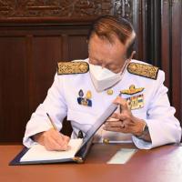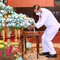 ประธานสภาผู้แทนราษฎร ถวายแจกันดอกไม้ เบื้องหน้าพระบรมฉายาลักษณ์สมเด็จพระนางเจ้าสิริกิติ์ พระบรมราชินีนาถ พระบรมราชชนนีพันปีหลวง พร้อมลงนามถวายพระพรฯ ณ พระบรมมหาราชวัง