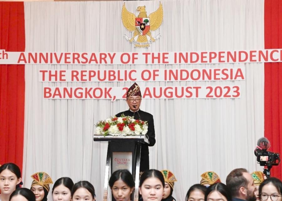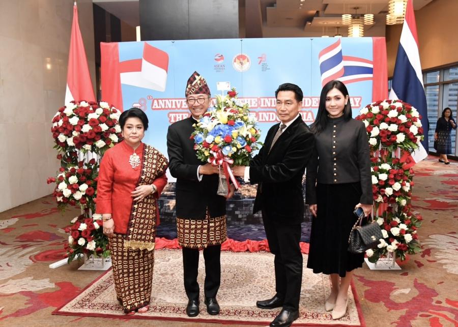 วันอังคารที่ 29 สิงหาคม 2566 เวลา 19.00 นาฬิกา ณ ห้องเวิลด์บอลรูม ชั้น 23 โรงแรมเซ็นทารา แกรนด์ และบางกอกคอนเวนชัน เซ็นเตอร์ เซ็นทรัลเวิลด์ กรุงเทพฯ นายวันมูหะมัดนอร์ มะทา ประธานสภาผู้แทนราษฎร พร้อมด้วยนายพิเชษฐ์ เชื้อเมืองพาน รองประธานสภาผู้แทนราษฎร คนที่สอง ได้เข้าร่วมงานเลี้ยงเฉลิมฉลองในโอกาสครบรอบ 78 ปีของวันประกาศอิสรภาพสาธารณรัฐอินโดนีเซีย พร้อมทั้ง มอบแจกันดอกไม้เพื่อแสดงความยินดีในวาระสำคัญดังกล่าวแก่เอกอัครราชทูตฯ โอกาสนี้ ประธานสภาผู้แทนราษฎร ในฐานะแขกเกียรติยศ ได้ขึ้นกล่าวแสดงความยินดีและอวยพรแก่สาธารณรัฐอินโดนีเซียและประชาชนชาวอินโดนีเซีย ซึ่งความสัมพันธ์ระหว่างไทยกับอินโดนีเซียเป็นมิตรประเทศที่มีมาอย่างยาวนานและราบรื่น