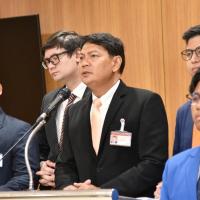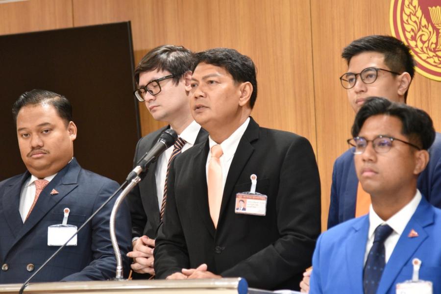 นายประเสริฐพงษ์ ศรนุวัตร์ สส.ก้าวไกล แถลงข่าวกรณีพรรคก้าวไกลถูกตำรวจคุกคามการทำกิจกรรมทางการเมืองที่ จ.กระบี่ เมื่อวันที่ 28 ส.ค. 66 ที่ผ่านมา