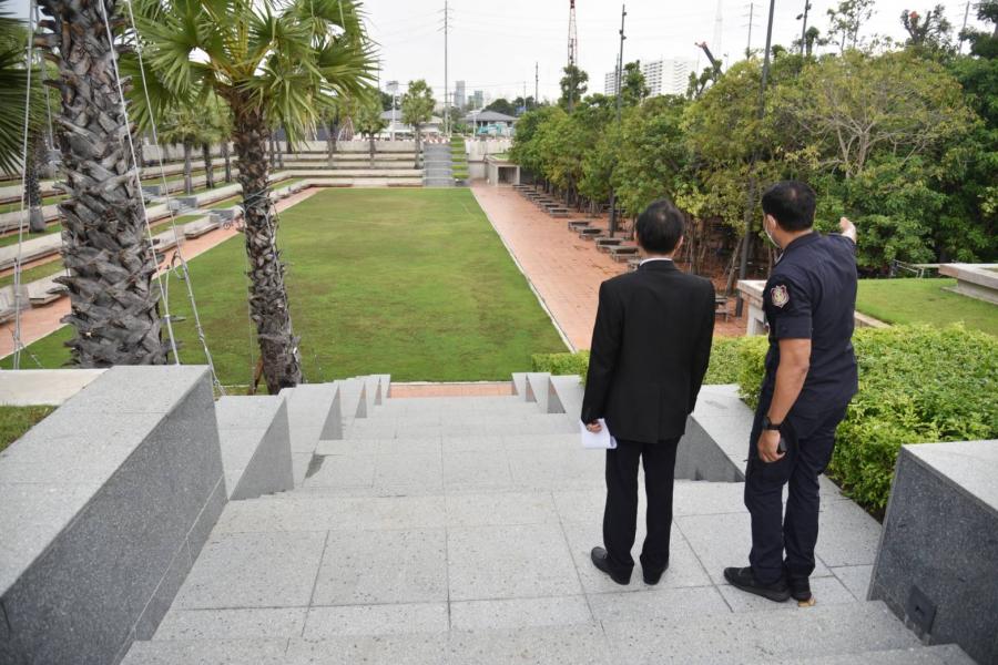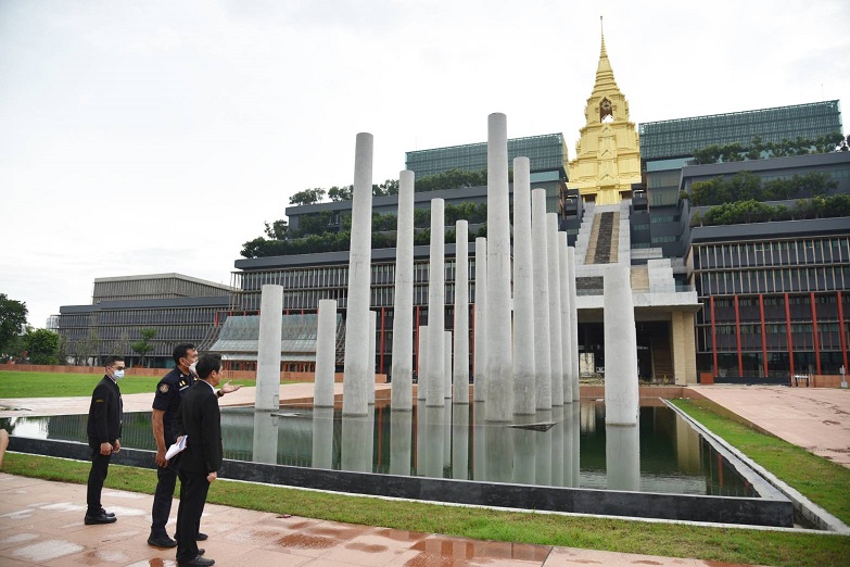 นายคัมภีร์ ดิษฐากรณ์ โฆษกประธานสภาผู้แทนราษฎร เยี่ยมชมพูมิทัศน์โดยรอบอาคารรัฐสภา เพื่อเตรียมความพร้อมด้านอาคารสถานที่ให้เหมาะสมกับรัฐสภาอันทรงเกียรติ