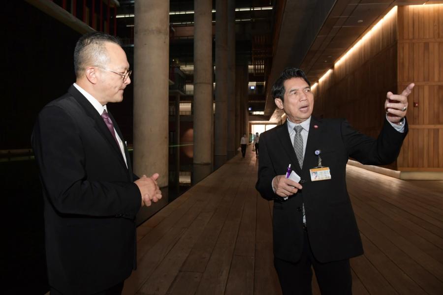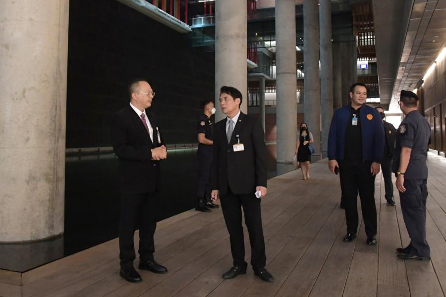 นายคัมภีร์ ดิษฐากรณ์ โฆษกประธานสภาผู้แทนราษฎร ตรวจความเรียบร้อยบริเวณสระมรกต