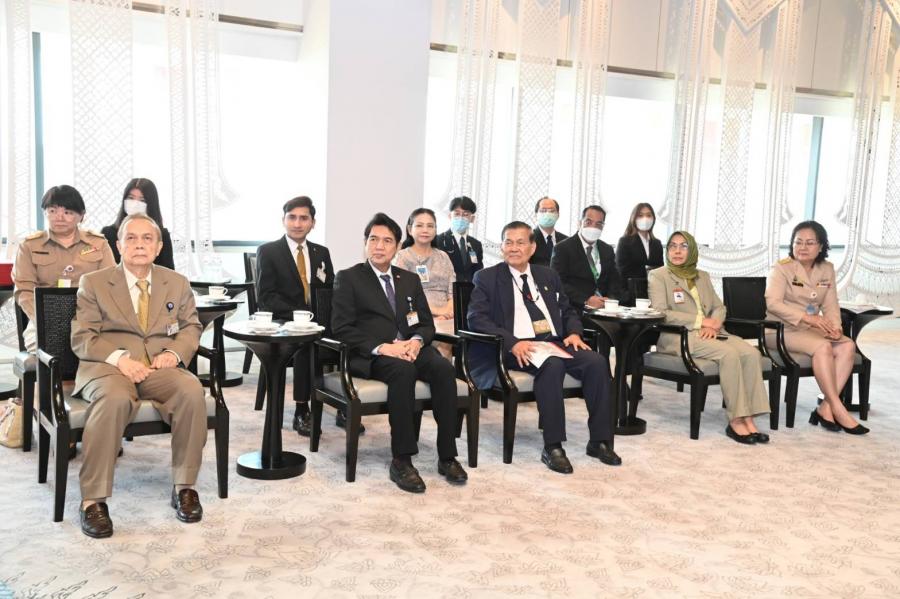 เอกอัครราชทูตฯ กล่าวขอบคุณที่ต้อนรับอย่างอบอุ่น และกล่าวถึงการเดินทางไปเยือนซาอุดีอาระเบียของ พล.อ.ประยุทธ์ จันทร์โอชา นายกรัฐมนตรี เมื่อเดือนมกราคม 2565 และการเสด็จฯ เยือนไทยของมกุฎราชกุมารและนายกรัฐมนตรีของซาอุดีอาระเบียเมื่อเดือนพฤศจิกายน 2565 เป็นการเปิดประวัติศาสตร์หน้าใหม่ของความสัมพันธ์ระหว่างสองประเทศ ทั้งนี้ ซาอุดีอาระเบียเน้นย้ำจะสนับสนุนการศึกษาแก่ชาวไทยมุสลิมในหลายสาขาวิชาอย่างต่อเนื่อง สำหรับวิสัยทัศน์ VISION 2030 ของซาอุดีอาระเบีย จะเป็นการปรับปรุงกฎหมาย โครงสร้างต่าง ๆ ให้สมบูรณ์และเปิดกว้าง การพัฒนาโครงสร้างพื้นฐานของประเทศ การพัฒนาพื้นที่ชายฝั่งทะเลแดงให้เป็นพื้นที่ท่องเที่ยว และจะนำระบบการยื่นขอรับการตรวจลงตราแบบอิเล็กทรอนิกส์ (E-VISA) มาใช้ เพื่อความสะดวกและรวดเร็วในการเดินทางมาซาอุดีอาระเบีย