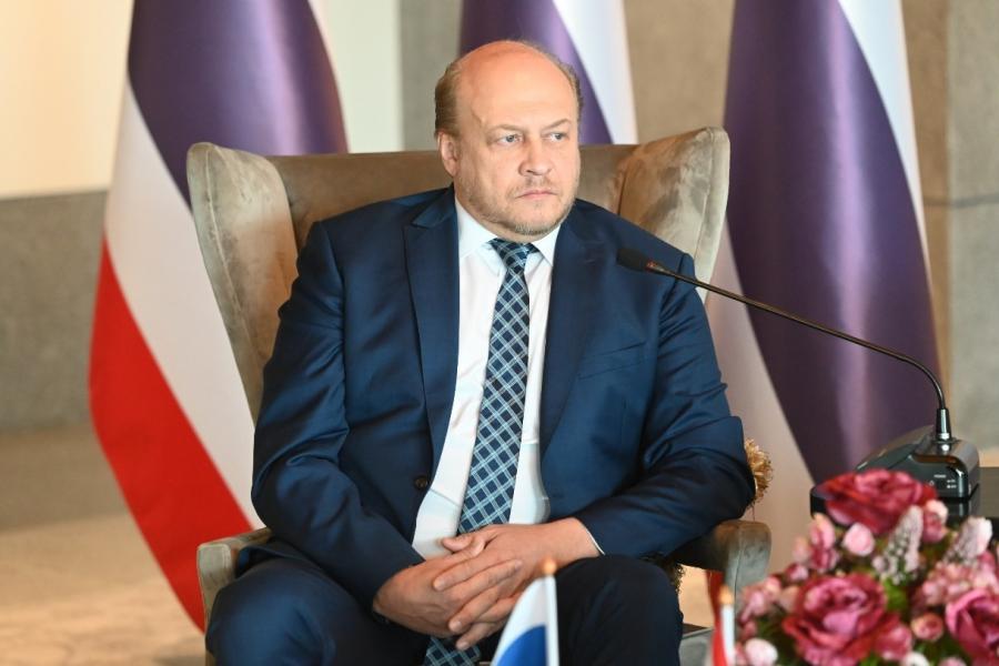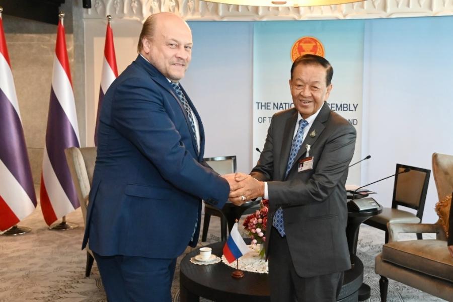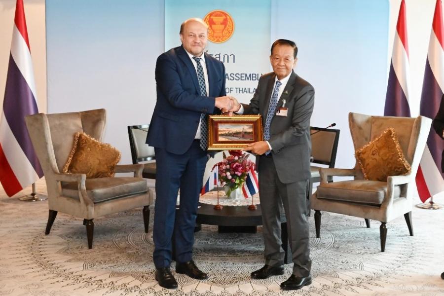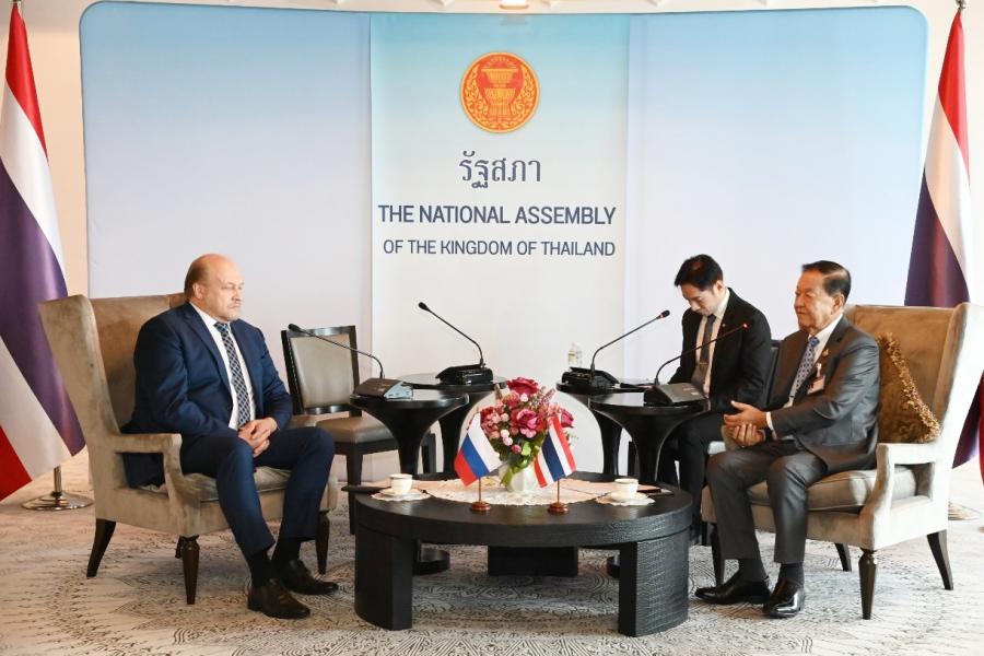 เอกอัครราชทูตฯ กล่าวขอบคุณที่ต้อนรับอย่างอบอุ่นและแสดงความยินดีที่ได้รับการโปรดเกล้าฯ ให้ดำรงตำแหน่งประธานรัฐสภา ประเทศไทยเป็นมิตรประเทศหุ้นส่วนสำคัญของรัสเซีย และแสดงความยินดีที่ประเทศไทยได้จัดการเลือกตั้งนายกรัฐมนตรีและจัดตั้งรัฐบาลผ่านไปด้วยความราบรื่นทั้งสองประเทศมีความร่วมมือในหลายด้านและลงนามข้อตกลงหลายฉบับ อีกทั้งในปี 2565 มีนักท่องเที่ยวชาวรัสเซียเดินทางมาเยือนไทยหลายแสนคน มีการเพิ่มเที่ยวบินระหว่างกันมากถึง 40 เที่ยวบิน/สัปดาห์ นอกจากนี้ ยังได้กล่าวถึงการประชุมกลุ่มประเทศ BRICS ที่แอฟริกาใต้เป็นเจ้าภาพ ระหว่างวันที่ 22 – 24 ส.ค. 66 ที่บรรลุความสำเร็จอย่างดี ท่ามกลางสถานการณ์โลกที่เปลี่ยนแปลงอย่างรวดเร็วและท้าทาย ทั้งนี้ เอกอัครราชทูตฯ ยังได้ชื่นชมไทยที่แสดงจุดยืนในการเมืองระหว่างประเทศได้อย่างสมดุลอีกด้วย