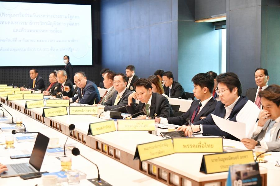 วันพฤหัสบดีที่ 7 กันยายน 2566 เวลา 11.00 นาฬิกา ณ ห้องประชุม CA 311 ชั้น 3 อาคารรัฐสภา นายวันมูหะมัดนอร์  มะทา ประธานรัฐสภา เป็นประธานการประชุมหารือร่วมกันระหว่างประธานรัฐสภาตัวแทนคณะกรรมาธิการวิสามัญกิจการวุฒิสภา และตัวแทนพรรคการเมือง เพื่อพิจารณากรอบระยะเวลา การซักถามและอภิปรายในการแถลงนโยบายของคณะรัฐมนตรี