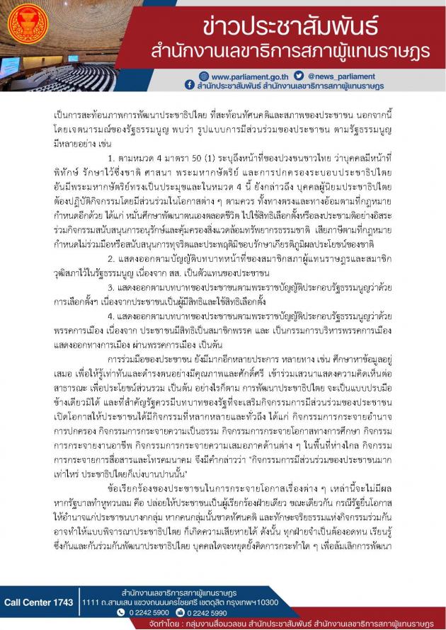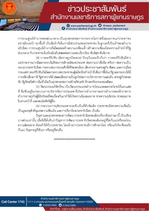 สงวนลิขสิทธิ์โดย สำนักงานเลขาธิการสภาผู้แทนราษฎร ๑๑๑๑ ถ.สามเสน แขวงถนนนครไชยศรี เขตดุสิต กรุงเทพฯ ๑๐๓๐๐