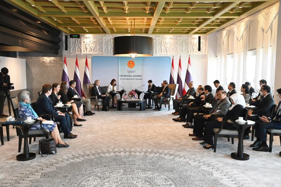 ประธานรัฐสภา และเอกอัครราชทูตสหรัฐอเมริกาประจำประเทศไทย ได้หารือถึงความสัมพันธ์ระหว่างไทยกับสหรัฐฯ ที่มีความแน่นแฟ้นในทุกมิติ ครอบคลุมทั้งด้านเศรษฐกิจ การเมือง ความมั่งคง สังคม การศึกษา และมีความสัมพันธ์อันดีทั้งในระดับรัฐบาล รัฐสภา ประชาชน รวมถึงภาคธุรกิจ โดยปีนี้เป็นปีที่ครบรอบ 190 ปี การเฉลิมฉลองความสัมพันธ์ทางการทูตระหว่างไทยกับสหรัฐฯ  ทั้งนี้ เมื่อปี 2531 ประธานรัฐสภาได้รับเชิญจากกระทรวงการต่างประเทศสหรัฐฯ ให้เดินทางไปศึกษาดูงานด้านต่าง ๆ ณ สหรัฐฯ เช่น ด้านยาเสพติด การตรวจคนเข้าเมือง การเลือกตั้ง ฯลฯ เป็นระยะเวลา 1 เดือน ด้านความสัมพันธ์ระหว่างรัฐสภาทั้งรัฐสภาไทยและรัฐสภาสหรัฐฯ มีความสัมพันธ์อยู่ในระดับดี โดยรัฐสภาไทยได้จัดตั้งกลุ่มมิตรภาพสมาชิกรัฐสภาไทย - สหรัฐฯ ขึ้น ซึ่งใช้เป็นกลไกสำคัญในการกระชับความสัมพันธ์และแลกเปลี่ยนระหว่างสมาชิกรัฐสภาทั้งสองประเทศ โดยทางรัฐสภาคองเกรสก็ได้มีการจัดตั้งกลุ่ม U.S.- Thai Alliance Caucus เช่นเดียวกัน  ที่ผ่านมามีบุคคลสำคัญของทั้งสองประเทศได้เดินทางเยือนระหว่างกันสม่ำเสมอ โดยล่าสุด มีสมาชิกสภาผู้แทนราษฎรสหรัฐฯ เดินทางเยือนไทยในช่วงเดือนสิงหาคม 2566 เพื่อกระชับความสัมพันธ์ระหว่างไทย - สหรัฐฯ ในขณะเดียวกัน วันนี้นายกรัฐมนตรีไทยมีกำหนดการเดินทางไปร่วมการประชุมสมัชชาสหประชาชาติ สมัยสามัญ ครั้งที่ 78 (78th Session of the United Nations General Assembly: UNGA78) ณ นครนิวยอร์ก สหรัฐอเมริกา ระหว่างวันที่ 18  – 24 ก.ย. 66