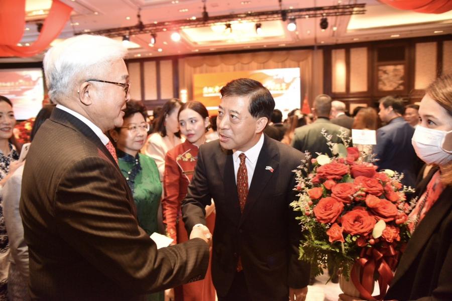 โอกาสนี้ ประธานสภาผู้แทนราษฎรในฐานะแขกเกียรติยศได้กล่าวแสดงความยินดีในโอกาสครบรอบวันสำคัญของจีน ในฐานะประเทศที่มีความสัมพันธ์ใกล้ชิดกันเป็นอย่างมาก มีการแลกเปลี่ยนการเยือนในทุกระดับอย่างสม่ำเสมอ โดยเฉพาะอย่างยิ่ง การเสด็จฯ เยือนจีนของพระบรมวงศานุวงศ์ของไทย มีส่วนสำคัญอย่างยิ่งต่อการเสริมสร้างและกระชับความสัมพันธ์และส่งเสริมความร่วมมือระหว่างสองประเทศให้แน่นแฟ้นยิ่งขึ้น โดยในปี 2566 ครบรอบ 48 ปีของการสถาปนาความสัมพันธ์ทางการทูตระหว่างไทยกับจีน นอกจากนี้ ไทยกับจีนยังมีความสัมพันธ์เชิงหุ้นส่วนทางยุทธศาสตร์ที่มีการขยายความร่วมมือเชิงลึกในทุกมิติ จึงควรที่ทั้งสองฝ่ายจะสนับสนุนและพัฒนาให้ก้าวหน้ายิ่งขึ้น และพร้อมจะสนับสนุนความร่วมมือระหว่างสองประเทศอย่างเต็มความสามารถ เพื่อประโยชน์และความเป็นอยู่ของประชาชนทั้งสองประเทศให้เจริญก้าวหน้าต่อไป