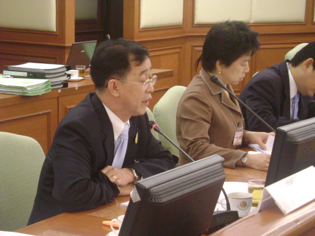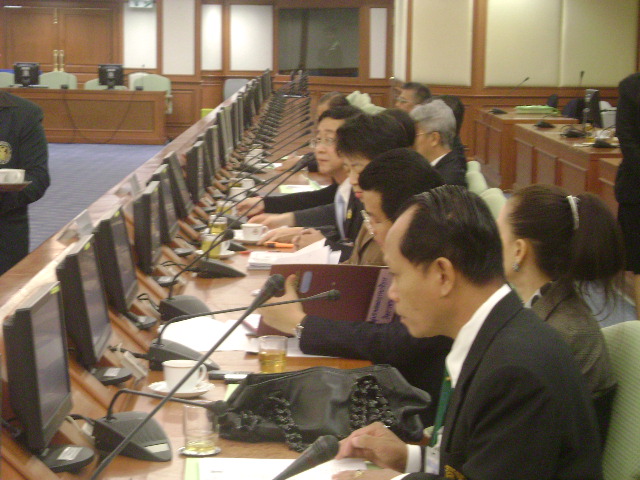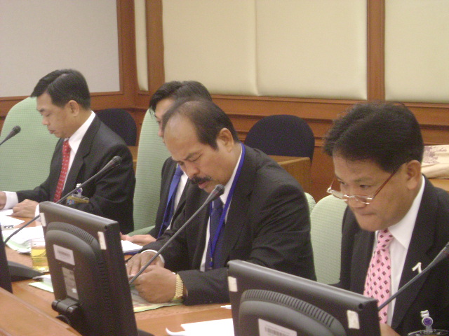 | คณะกรรมาธิการกิจการชายแดนไทย เชิญปลัดกระทรวงการต่างประเทศและเลขาธิการคณะกรรมการพัฒนาเศรษฐกิจและสังคมแห่งชาติเข้าร่วมประชุมเพื่อปรึกษาและให้ข้อมูลในการพิจารณาพัฒนาเศรษฐกิจชายแดนราชอาณาจักรไทยกับสหภาพพม่า ตามอำนาจหน้าที่ของคณะกรรมาธิการ เมื่อวันพฤหัสบดีที่ ๖ พฤศจิกายน ๒๕๕๑ ณ ห้องประชุมงบประมาณ ชั้น ๓ อาคารรัฐสภา๓ |