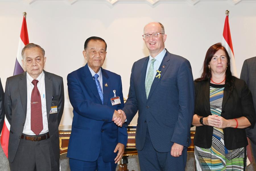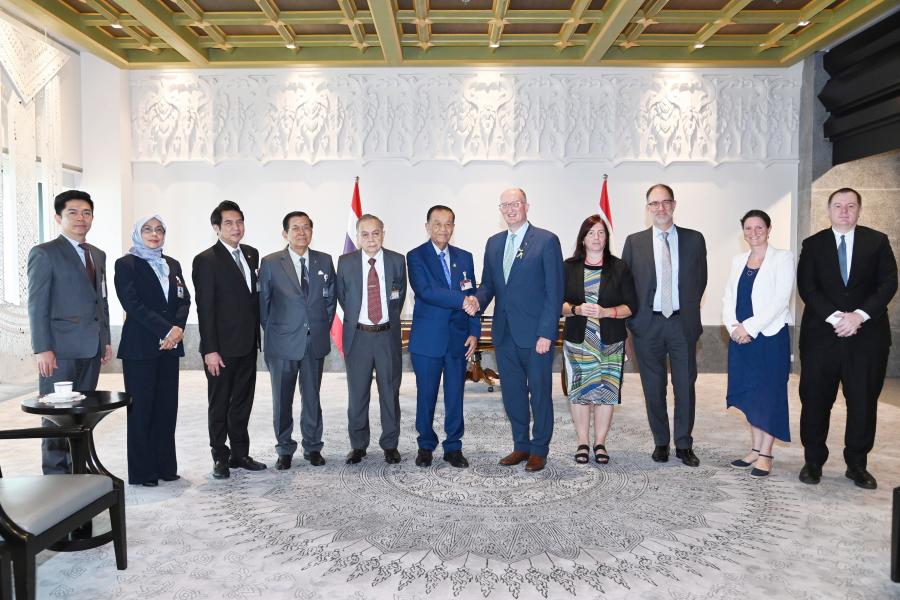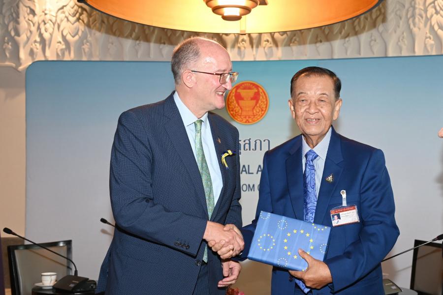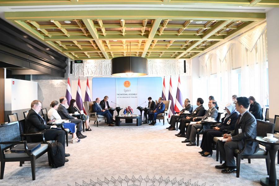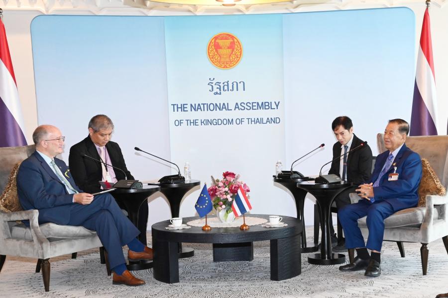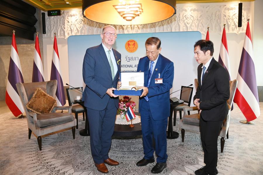 ประธานรัฐสภาและประธานสภาผู้แทนราษฎร ให้การรับรอง เอกอัครราชทูตสหภาพยุโรปประจำประเทศไทย เพื่อแสดงความยินดีกับประธานรัฐสภา ในโอกาสเข้ารับตำแหน่งใหม่